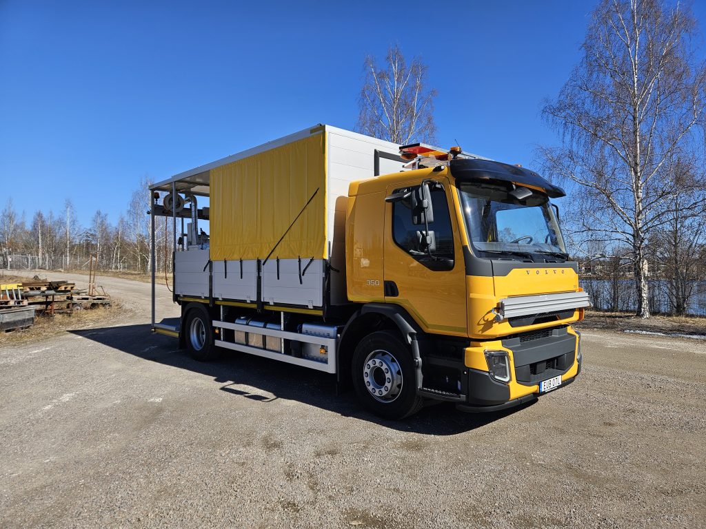The choice fell on a Handtool  construction with electric drive and solar cells built on a VOLVO FE.  The car is also equipped with our solutions for a good working environment and ergonomics.